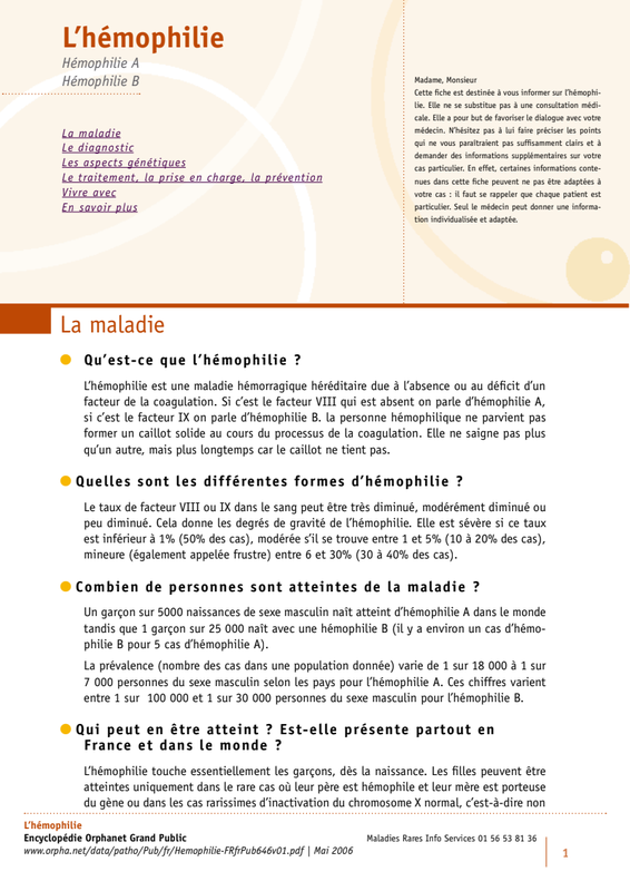 Orphanet L'Hémophilie