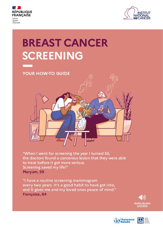 Inca Livret Dépistage Du Cancer Du Sein