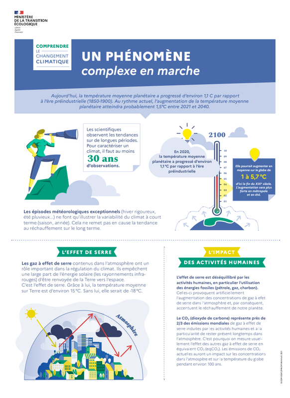 Le ministère chargé de l'écologie a réalisé une exposition Comprendre le changement climatique. Elle est constituée de onze panneaux